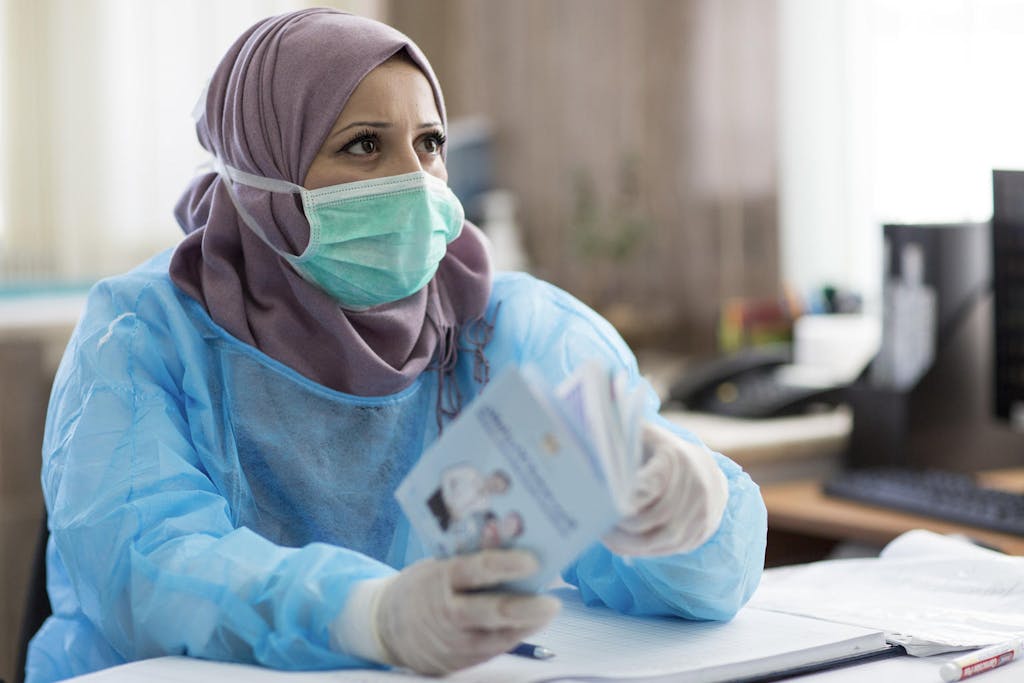 Nurse Hana Barakat holds an immunization booklet on the Ministry of well being clinic in Ramallah, Palestine. photograph: Ahmed Izhiman/UNICEF