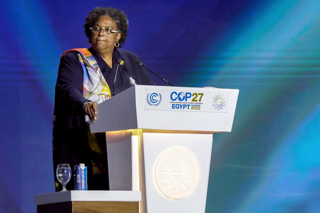 Prime Minister of Barbados Mia Mottley speaks on the UN local climate Change convention usually acknowledged as COP 27 in Sharm el-Sheikh Egypt. photograph: UN local climate Change