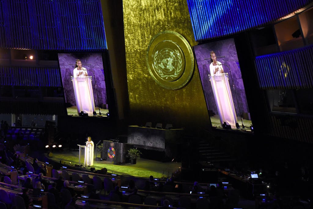 Poet and activist Amanda Gorman speaks on the Sustainable enchancment goals (SDG) second on the United Nations widespread meeting in NY metropolis on September 19, 2022. photograph: David Berkwitz