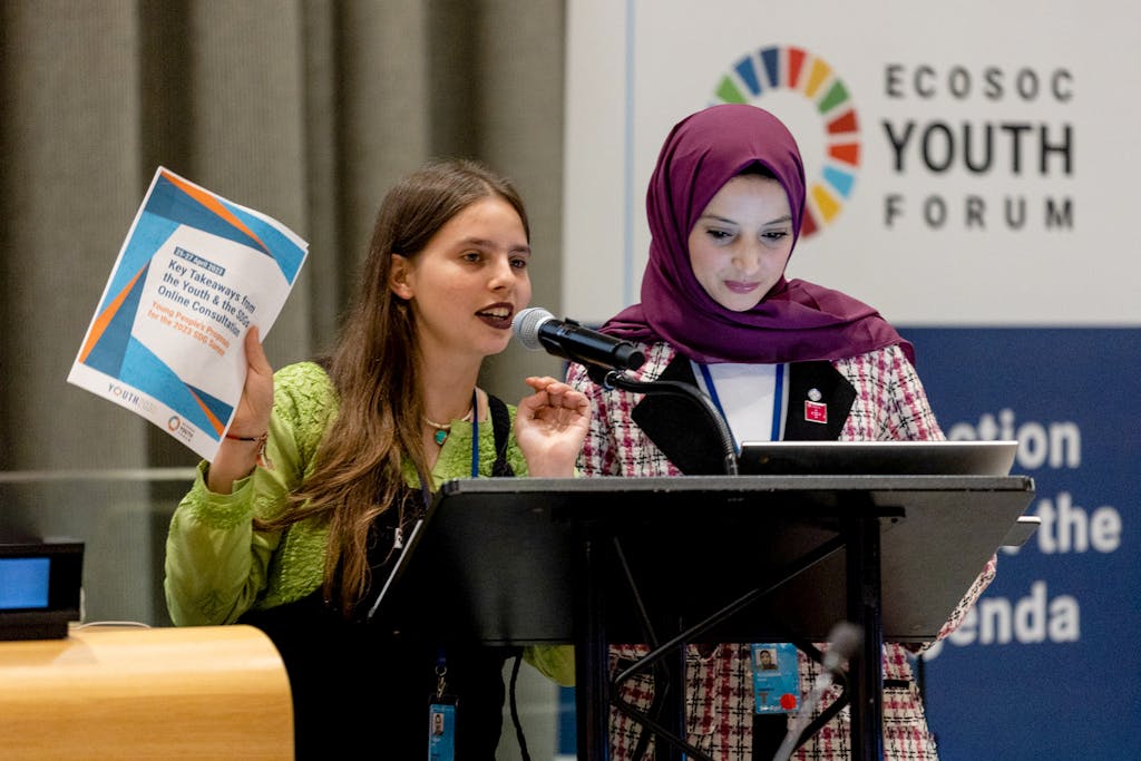 Held during the ECOSOC Youth Forum in April 2023, the intergenerational session on Youth Insights and Recommendations in the Lead Up to the SDG Summit 2023, was chaired by the President of ECOSOC and co-facilitated by UN Foundation’s Next Generation Fellow Inés Yábar and Asma Rouabhia. Photo: Joel Sheakoski/UN Photo