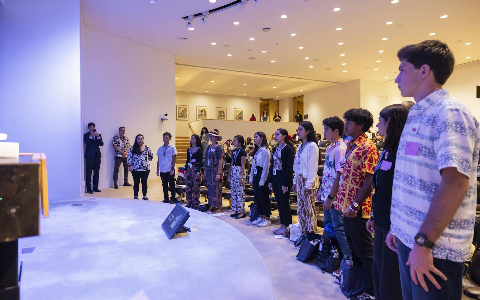 UN Junior Ambassadors visit the UN General Assembly Hall in New York, New York.