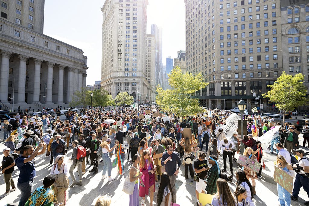 youthful people collect at Foley sq. in NY metropolis on Sept. 23, 2022 for the Fridays for Future NYC world local climate Strike. Carbon tales/UN basis
